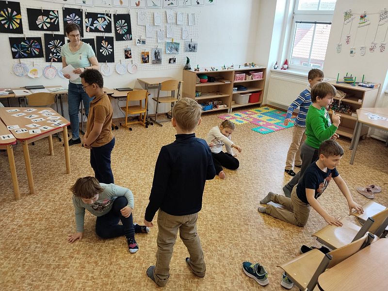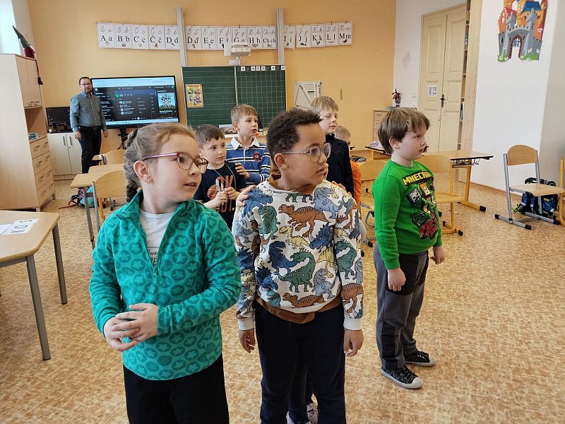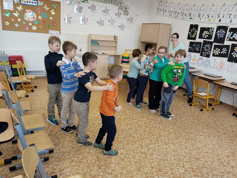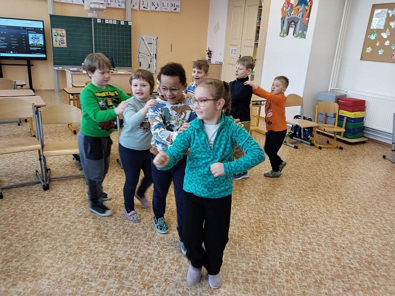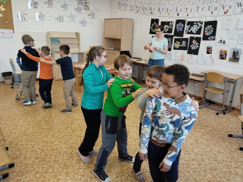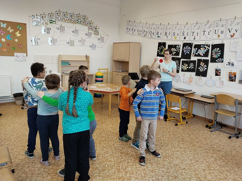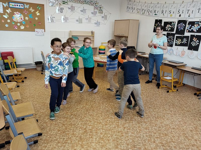 Po přivítání s paní Starou si každý žák vyhledal počáteční písmeno svého jména. Poté třídou hrála píseň „Máme rádi zvířata“, u které děti při náhodném zastavení hádaly ukázaná zvířata, čímž se skvěle dostaly do tempa. Ve dvojicích následně skládaly jména zvířat z jednotlivých písmen.