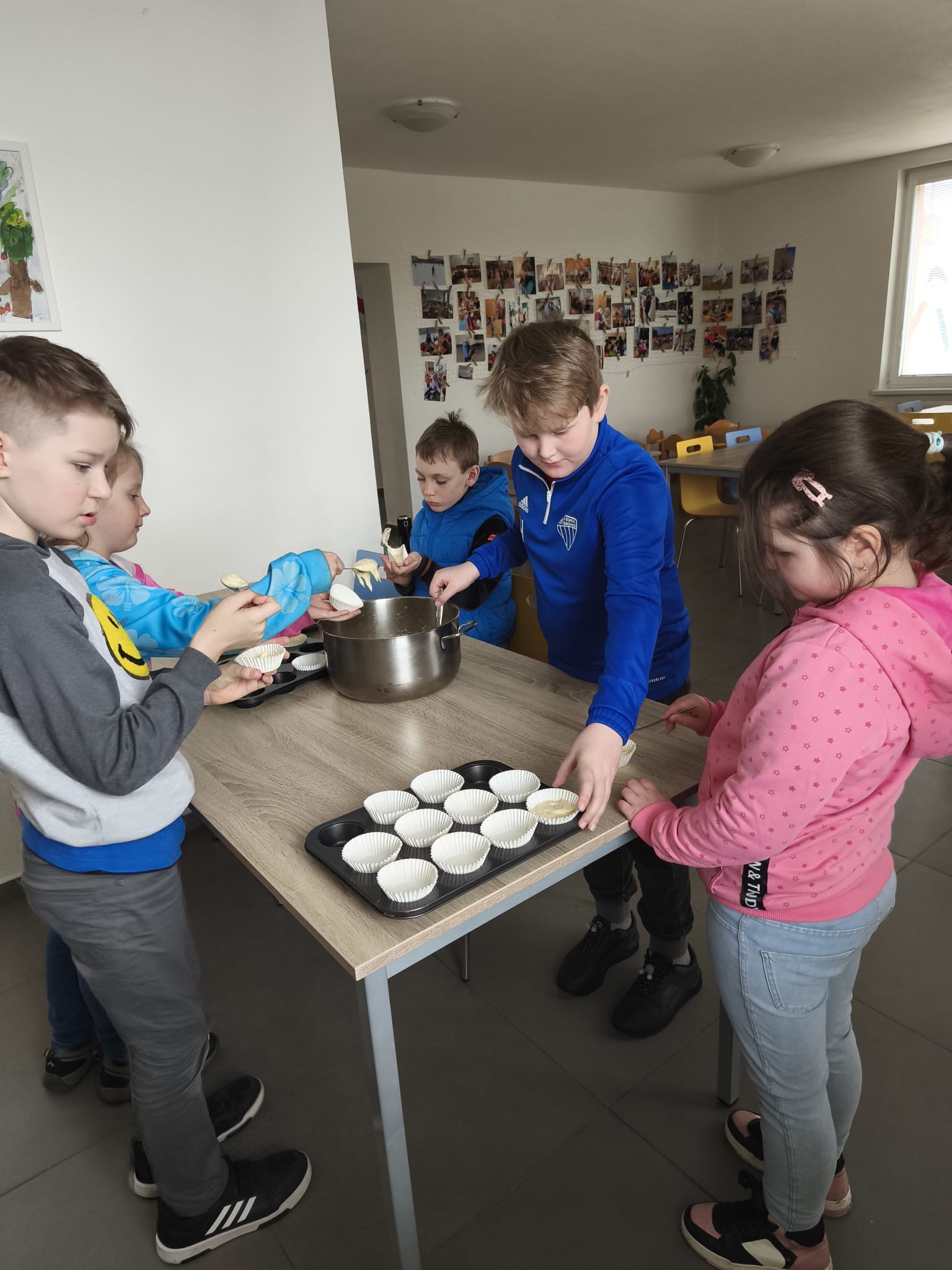 Děti z přípravné třídy a naši žáci z druhé a čtvrté třídy se společně pustili do pečení tradičních i moderních velikonočních dobrot. Pod rukama jim vznikaly nadýchané jidáše, sladké muffiny i oblíbené medové kuličky.